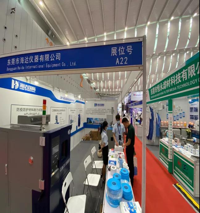廣東海達(dá)儀器有限公司洞悉目前國(guó)內(nèi)和國(guó)外檢測(cè)設(shè)備行業(yè)市場(chǎng)現(xiàn)狀,針對(duì)檢測(cè)設(shè)備進(jìn)行研發(fā)。在本次展會(huì)上,海達(dá)展出了HD-K406口罩顆粒物過濾試驗(yàn)機(jī)、HD-B609B-S萬(wàn)能拉力試驗(yàn)機(jī)、恒溫恒濕箱,得到了參展者的強(qiáng)烈興趣和廣泛關(guān)注。
